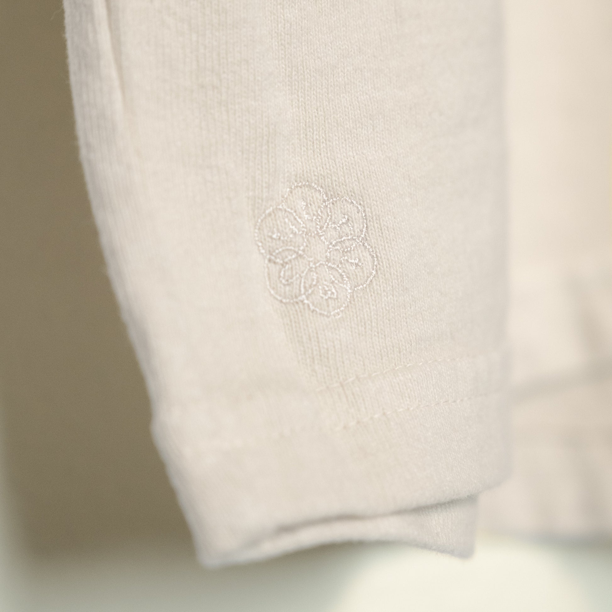 100% GRS-certified recycled cotton. 10-singles yarn gauge. 270 gsm.